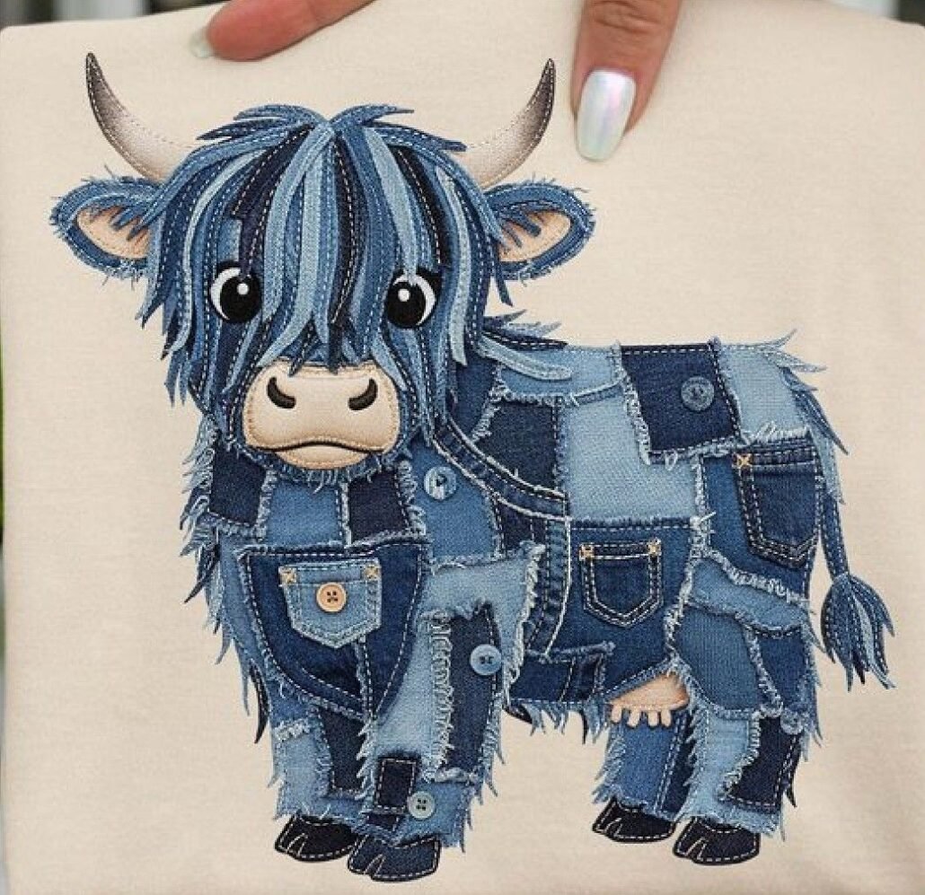 Highland Cow in Patchwork Denim – PATTERN