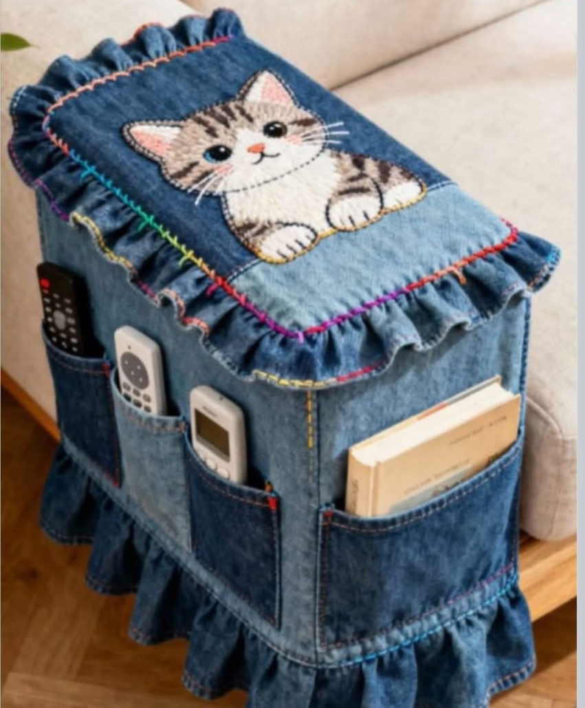 Upcycled Denim “Organizer” Pillow with Ruffles – Tutorial