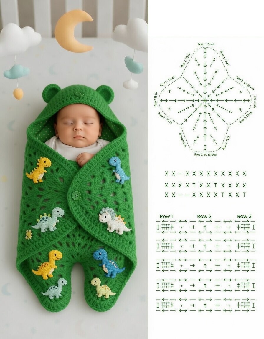 Baby Hooded Wrap with Button Closure – PATTERN is a cozy and practical crochet design that combines warmth, comfort, and adorable style for little ones. This pattern is perfect for crocheters who want to create a soft, functional wrap that keeps babies snug while adding a charming handmade touch.
