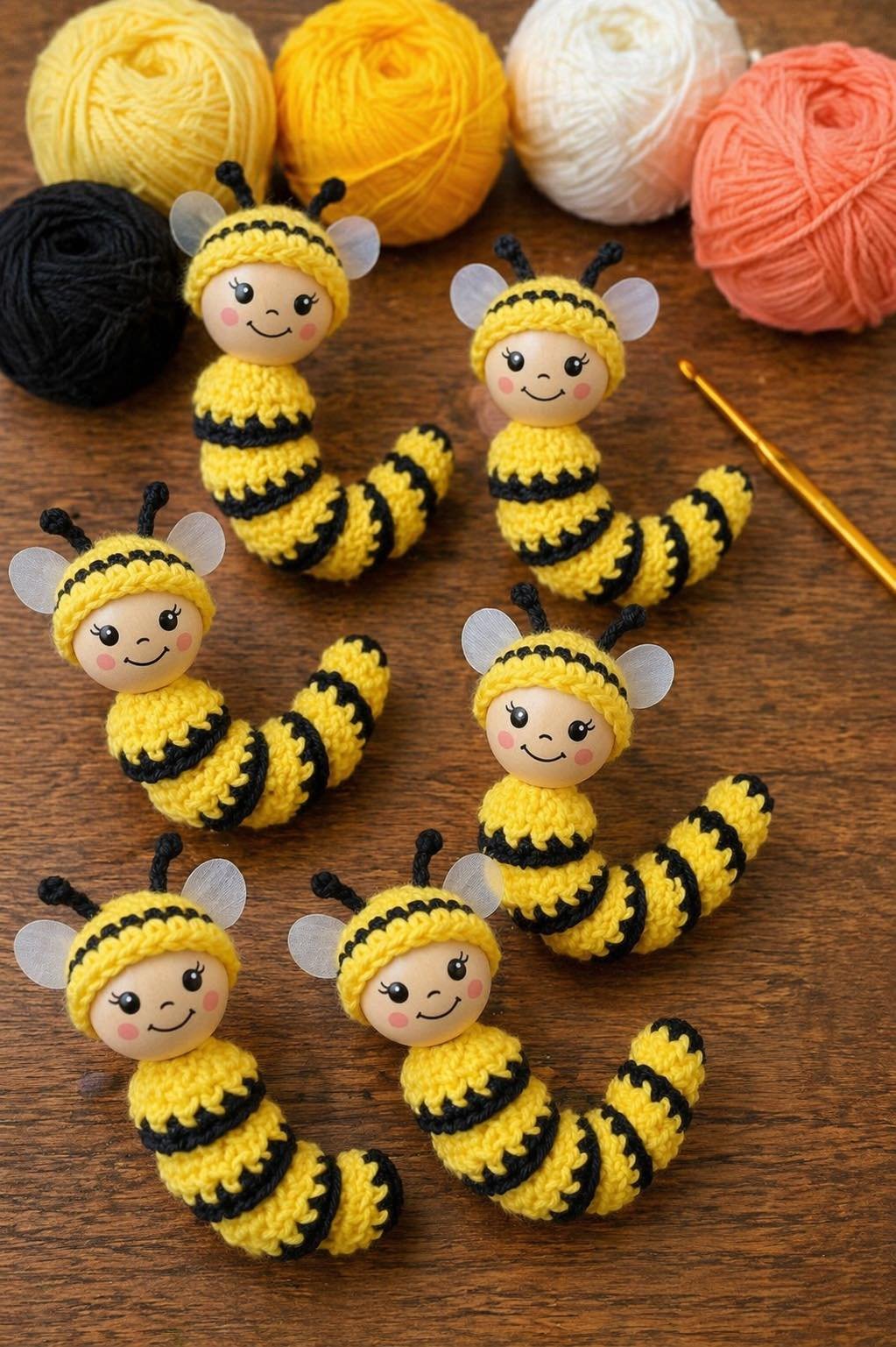 The DIY Crochet Bee can be turned into keychains, baby toys, or decorative items.