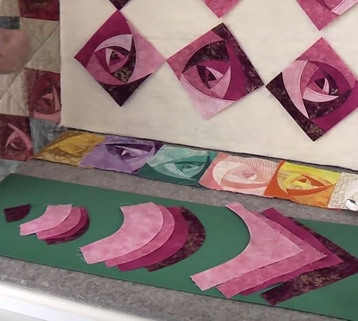 A variety of fabric colors can enhance the swirling rose effect. Many quilters choose coordinated color palettes that highlight the movement of the pattern.