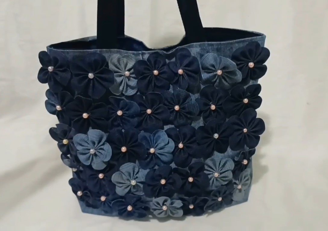 In the Tote Bag using Recycled Jeans – TUTORIAL, creativity allows you to make each bag unique.