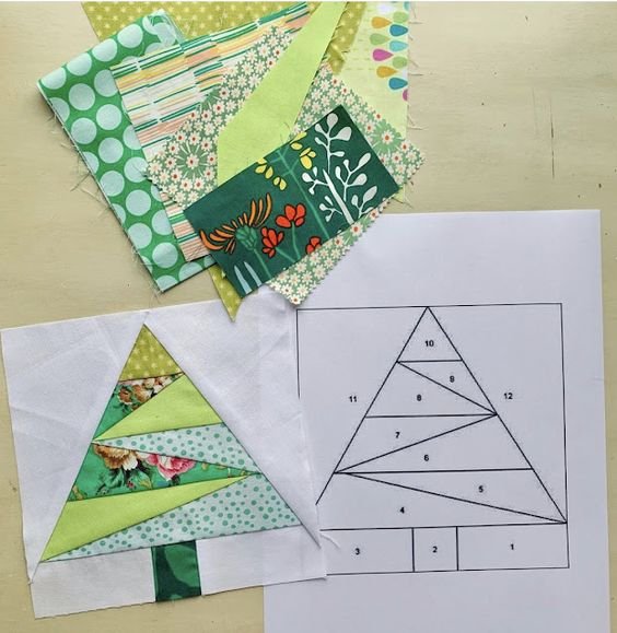 Once the main sections are ready, join them to form your complete tree block. Take your time with this step, as block accuracy contributes significantly to the professional appearance of your final quilt.